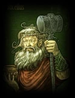 Egli è raffigurato come un grande, forte, barbuto uomo di mezza età,con indosso abiti di pelle di lupo,ed una tunica che gli arriva fino all'altezza delle ginocchia.